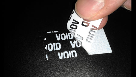 El uso de estas etiquetas de seguridad garantiza la inviolabilidad y confiabilidad de sus productos a lo largo de toda la cadena de fabricación y distribución de los mismos, ya que permite fácilmente demostrar la apertura de cualquier tipo de material. Al retirar dicha etiqueta se puede apreciar la palabra VOID (Nulo/Violado), ya sea en la etiqueta o en la superficie donde fue pegada.